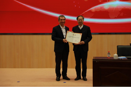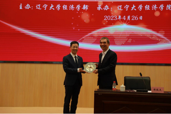 报告会结束后,余淼杰向林毅夫教授赠送了太阳集团“宋则行名家讲堂”纪念盘,潘一山向林毅夫教授颁发了太阳集团终身名誉教授聘书。