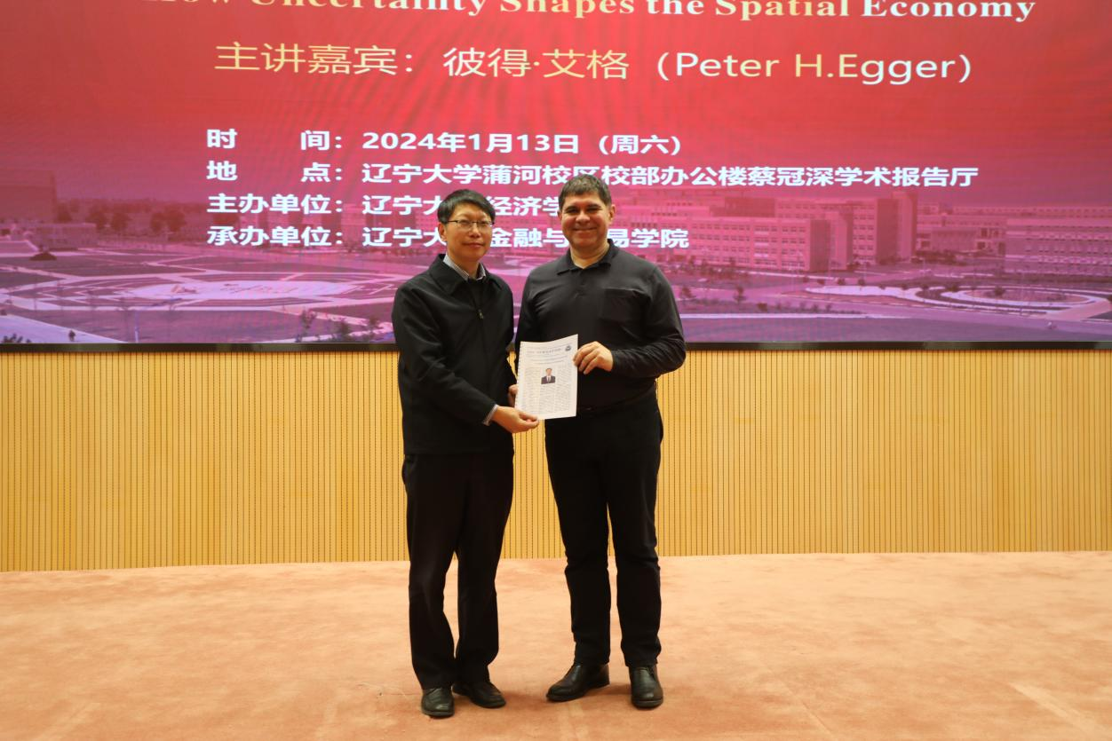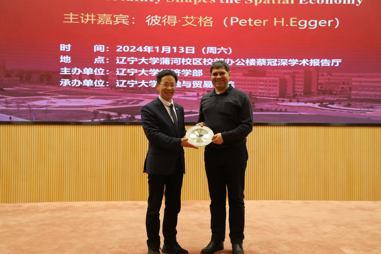 1月13日下午,太阳集团宋则行海外名家大讲堂(第十讲)在蒲河校区校部办公楼蔡冠深学术报告厅举行。国际著名经济学家、苏黎世联邦理工学院彼得・艾格(Peter H.Egger)教授应邀作题为《不确定性如何影响空间经济》(How Uncertainty Shapes the Spatial Economy)的学术报告。太阳集团党委副书记、校长余淼杰教授出席报告会并致欢迎辞。暨南大学产业经济研究院李杰教授,太阳成集团tyc151cc副主任霍伟东教授、中国开放经济研究院分管日常工作副院长崔铮教授、商学院副院长韩亮亮教授、新华国际商学院副院长王晓辉教授出席报告会。会议由太阳集团中国经济研究院副院长兼金融与贸易学院副院长马湘君教授主持。