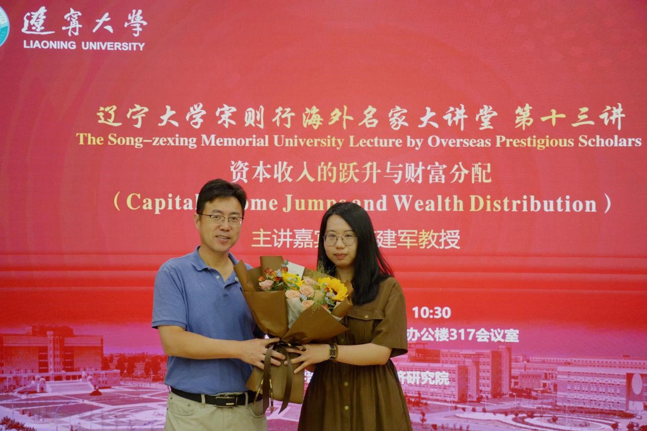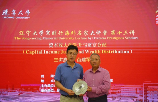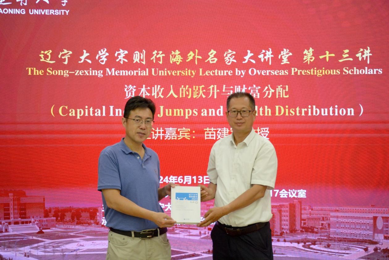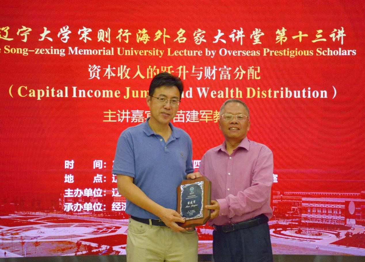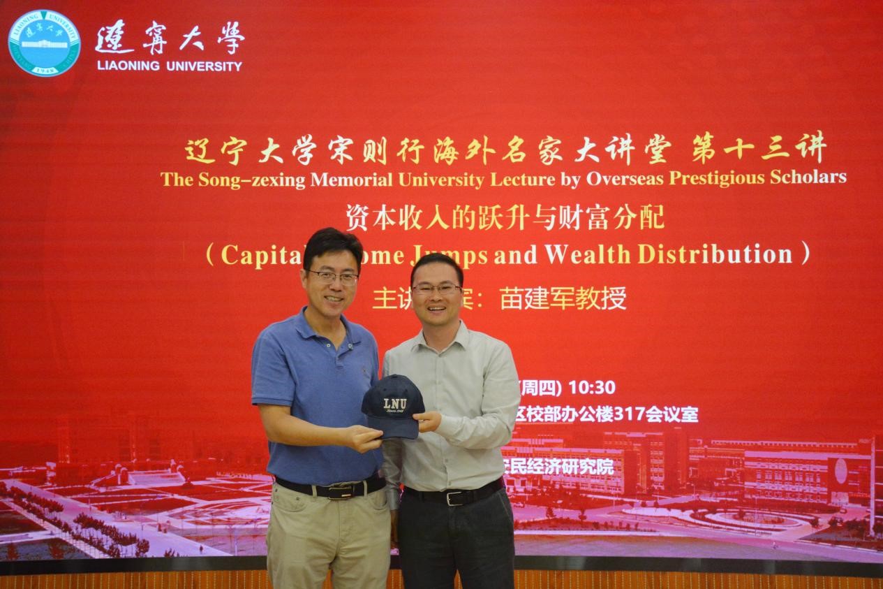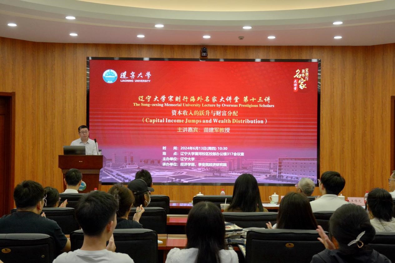 6月13日上午,太阳集团宋则行海外名家大讲堂(第十三讲)在蒲河校区校部办公楼317会议室举行。美国波士顿大学经济学系苗建军教授应邀作了题为《Capital Income Jumps and Wealth Distribution》的学术报告。本次报告会由太阳集团主办,太阳成集团tyc151cc、李安民经济研究院承办,来自太阳成集团tyc151cc、李安民经济研究院和经济学专业的近100名师生参加会议。会议由太阳集团李安民经济研究院副院长游宇教授主持。