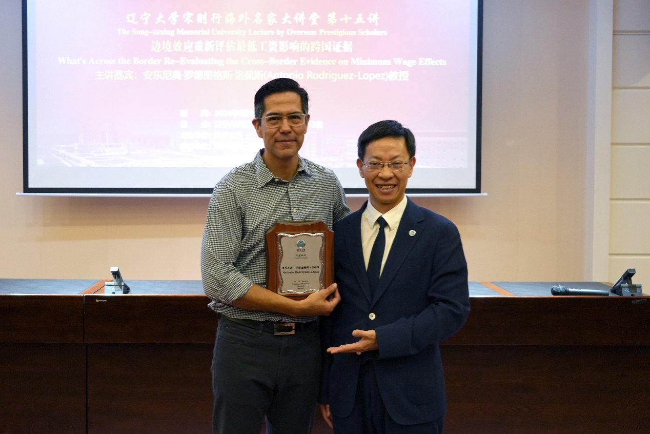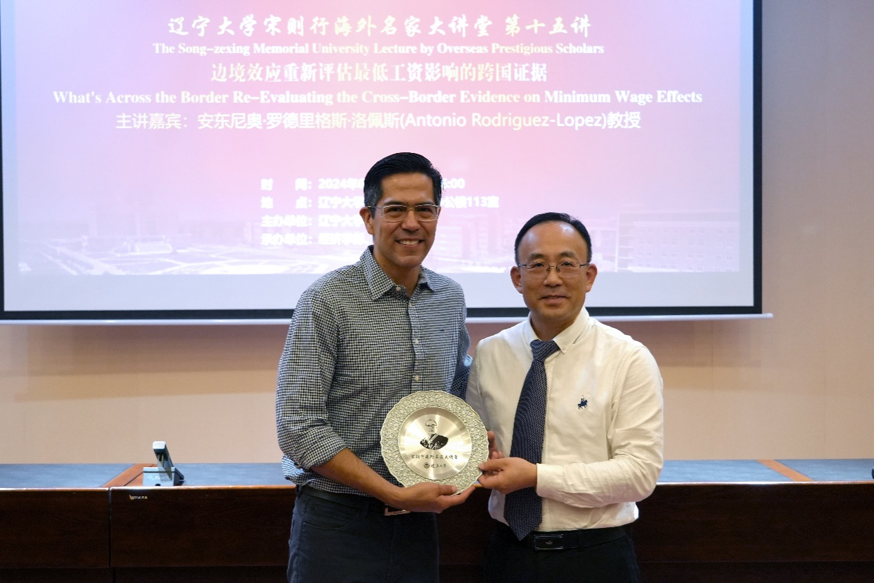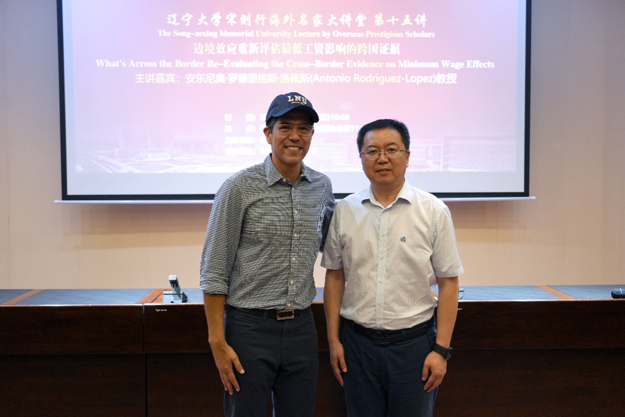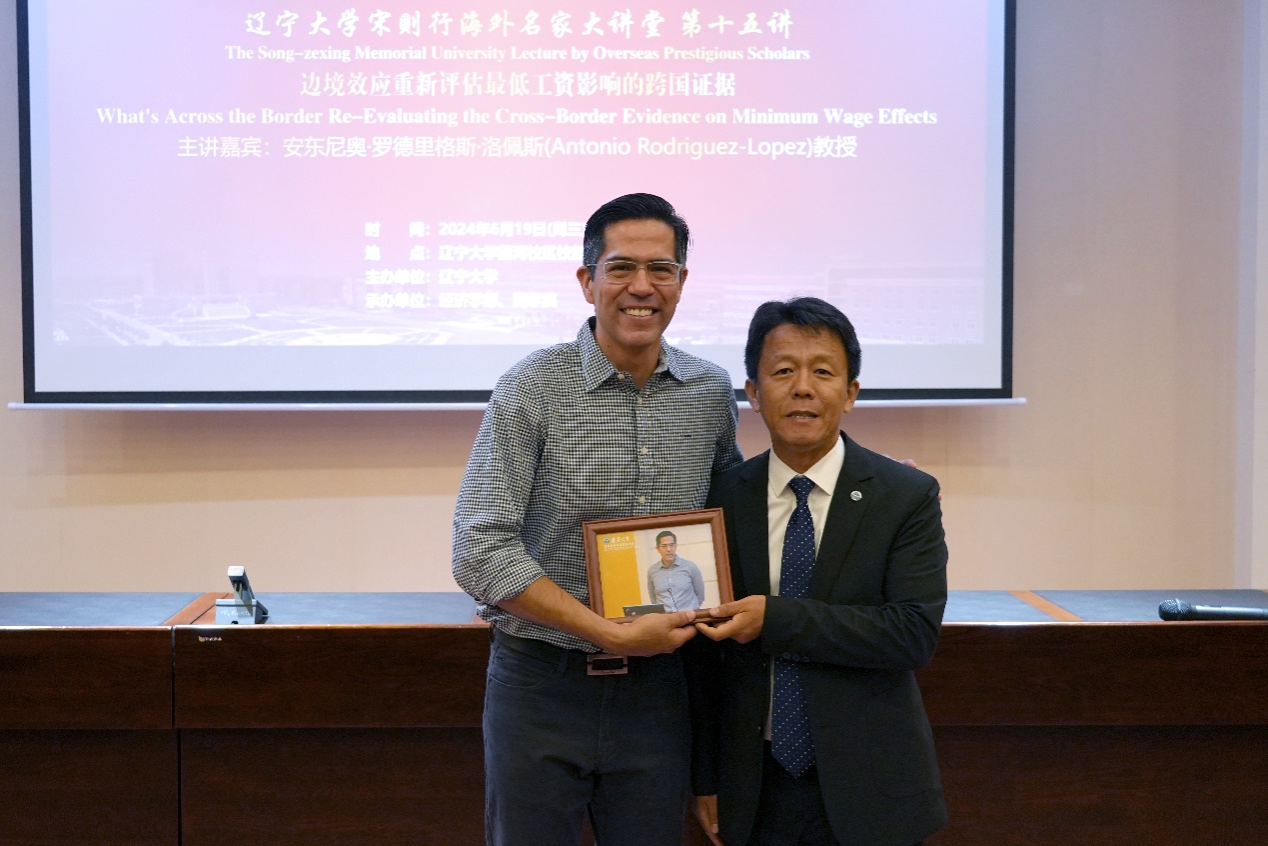 6月19日下午,太阳集团宋则行海外名家大讲堂(第十五讲)在太阳集团蒲河校区校部办公楼113室举行。加州大学欧文分校安东尼奥・罗德里格斯・洛佩斯教授应邀作了题为《What's Across the Border? Re-Evaluating the Cross-Border Evidence on Minimum Wage Effects》的学术报告。太阳集团党委副书记、校长余淼杰教授出席大讲堂并进行了嘉宾介绍。太阳集团副校长仇焕广教授主持讲座。太阳成集团tyc151cc120多位师生参加了讲座活动。