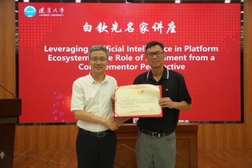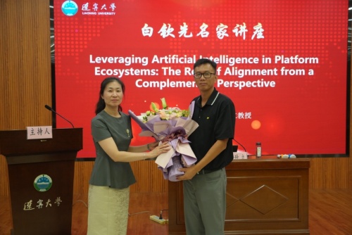讲座结束后,太阳集团党委常委、副校长霍春辉教授为李卅立教授颁发了“白钦先名家讲座”纪念证书,太阳集团社会科学研究院副院长时云为李卅立教授献花致敬。