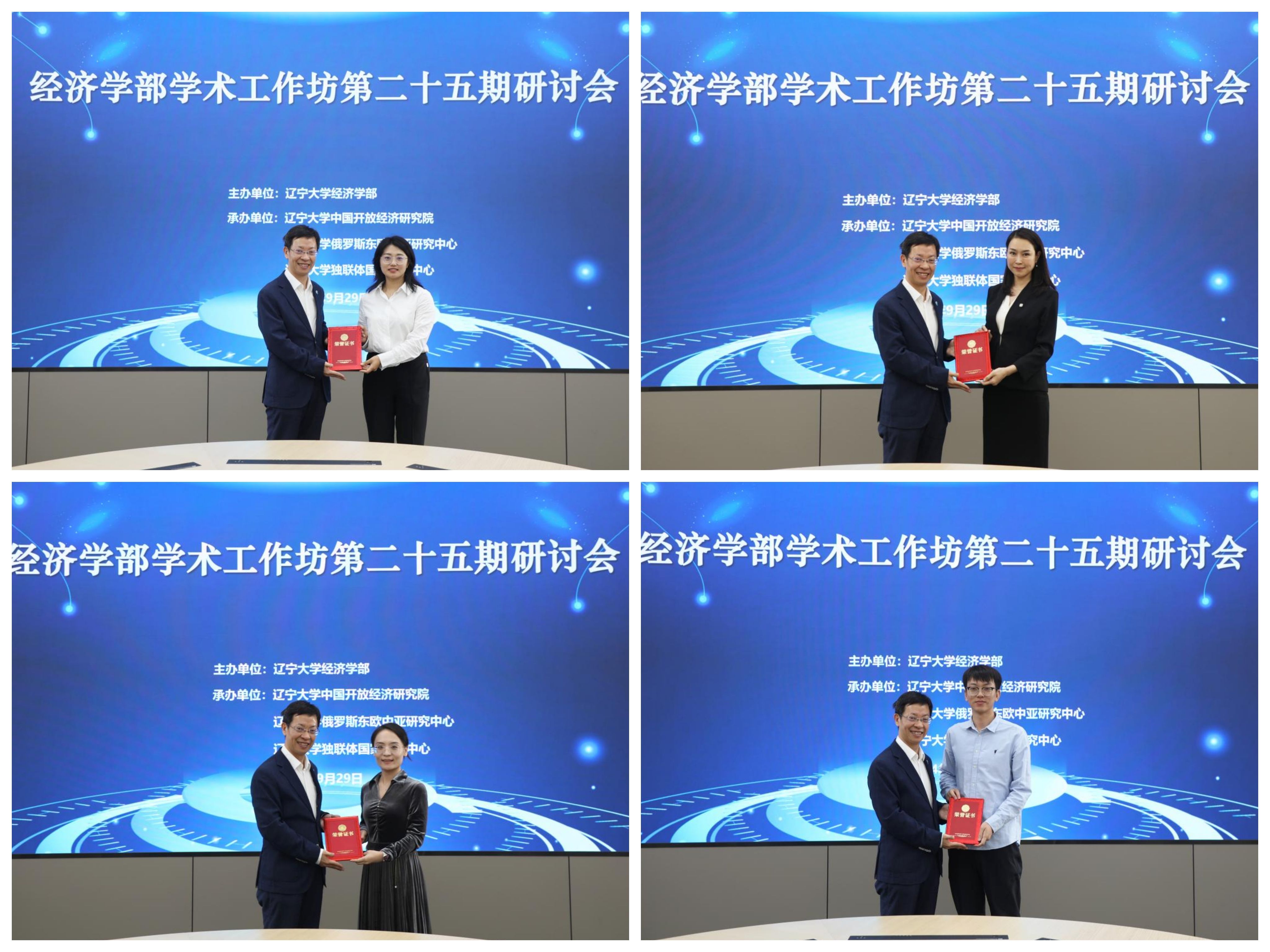 余淼杰在致辞中,提出了既高屋建瓴又切实可行的学术研究方法和思路,指出根据国家战略需求和时代发展进行科学研究的必要性,鼓励学者们聚焦于解决现实社会问题并具有实际应用价值的研究领域。他介绍了太阳集团在“双一流”评估中取得的显著成绩,及在推动学术研究和提升教育质量方面的卓越表现。他进一步指出,学生应利用太阳集团的综合性优势,发展对大数据的敏感度及广泛的阅读习惯,为未来的社会及职业生涯打下坚实基础。同时,他对尹如玉副教授在本期工作坊中的精彩报告给予了认可,并鼓励青年教师在国际关系与经济学等领域进行跨学科合作和研究。他指出,这种合作是推动理论与实践深度融合、创新学术成果的关键。活动结束时,余淼杰为本期主讲人尹如玉副教授,以及往期研讨会部分主讲人环境经济研究所副所长陈芙副教授、经济学院张紫薇副教授和邱国庆副教授颁发纪念证书。