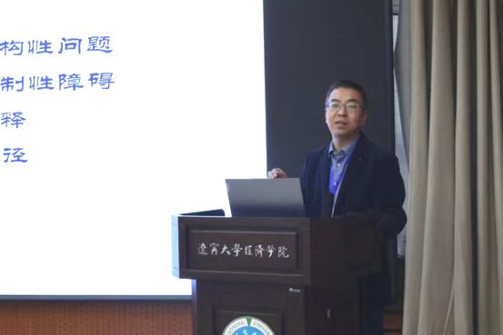 张志元教授以“东北地区经济高质量发展新动能的生成机理与塑造路径”为题,对东北地区经济高质量发展存在的困境和针对性的发展路径进行了探讨。他指出,当前东北地区塑造经济高质量发展新动能还面临传统产业阶段性产能过剩、要素配置结构不合理、战略性新兴产业支撑能力不足、产业提质增效步伐缓慢等现实困境。塑造经济高质量发展新动能是优化经济布局、强化创新引领、保障经济持续健康发展的内在要求,必须持续推进产业数字化转型,加快要素市场化高效配置,推动战略性新兴产业融合集群发展,聚力提升产业链供应链创新链现代化水平,为实现经济高质量发展注入新动能。