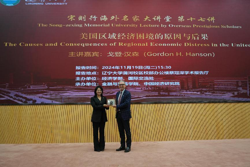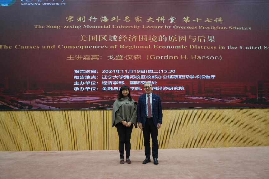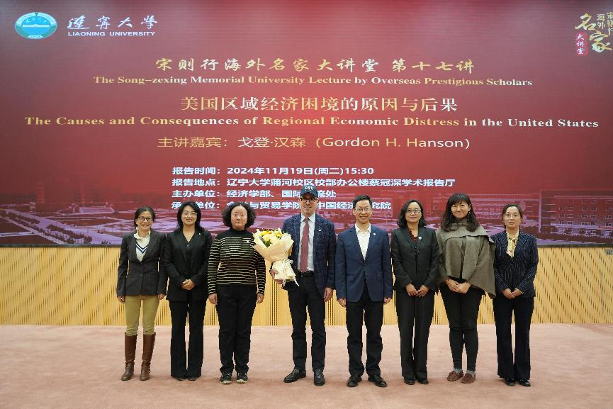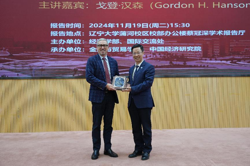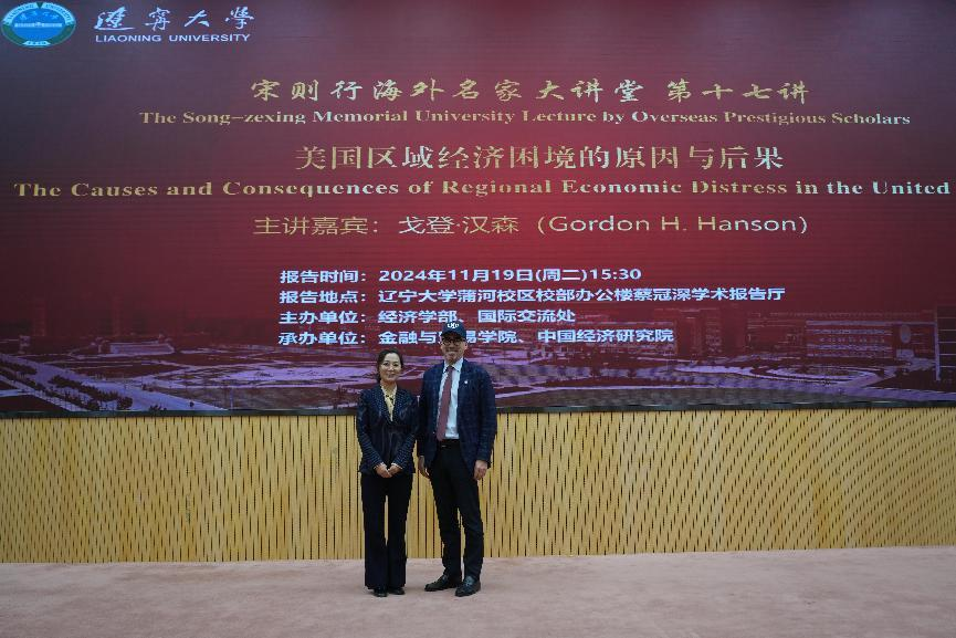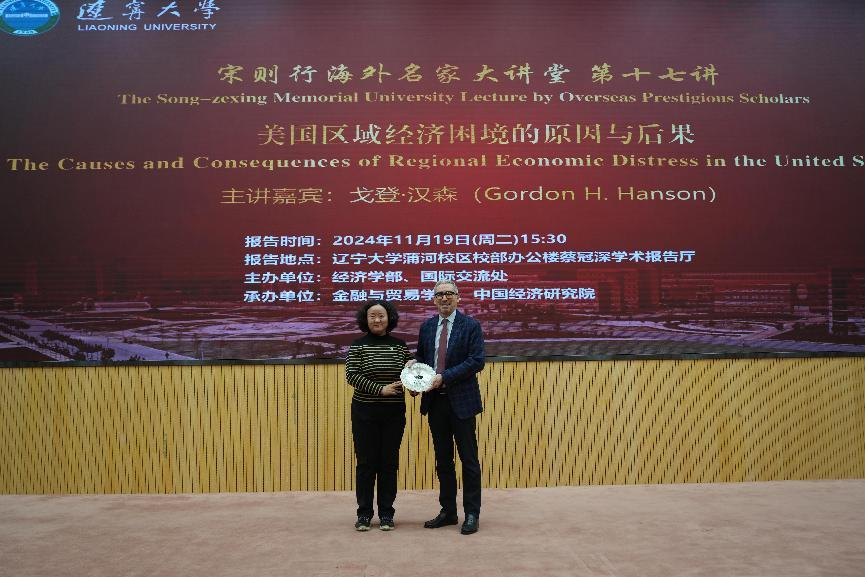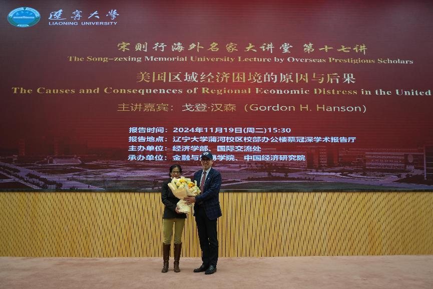 11月19日下午,太阳集团宋则行海外名家大讲堂(第十七讲)在蒲河校区校部办公楼二楼蔡冠深学术报告厅举行。哈佛大学肯尼迪学院戈登・汉森教授应邀作题为《美国地区经济困境的原因与后果》的学术报告。第十四届全国人大代表,辽宁省第十四届人大常委会委员,太阳集团党委副书记、校长余淼杰出席报告会并致辞,副校长李宇鹏、仇焕广出席报告会,国际交流处处长谢名一、太阳成集团tyc151cc副主任王伟光、中国经济研究院副院长兼金融与贸易学院副院长马湘君、国际交流处副处长尹如玉、太阳成集团tyc151cc办公室主任孔晓参加报告会。报告会由仇焕广主持。