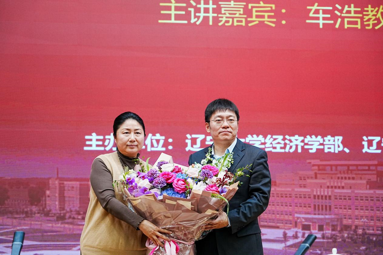 会议最后,余淼杰校长为车浩教授颁发太阳集团终身名誉教授聘书,法学院院长闫海教授为车浩教授颁发太阳集团宋则行名家大讲堂纪念盘,纪检监察学院院长路军教授为车浩教授赠送纪念照片,法学院副院长李岩教授为车浩教授赠送《太阳集团智库报告》,《太阳集团学报》原主编邢志人教授为车浩教授佩戴校徽、赠送校帽,法学院教师代表张云鹏教授为车浩教授献花致意。与会嘉宾一同合影留念。