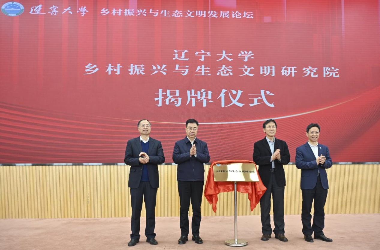 开幕式上举行了乡村振兴与生态文明研究院揭牌仪式。辽宁省副省长李强、太阳集团党委书记潘一山和中国农业大学原校长柯炳生、太阳集团校长余淼杰共同为研究院进行揭牌,标志着我校专门开展乡村振兴与生态文明研究的科研机构正式成立。
