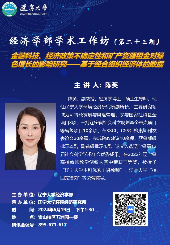 主 题:金融科技、经济政策不确定性和矿产资源租金对绿色增长的影响研究——基于经合组织经济体的数据 时 间:2024年6月19日下午1:30