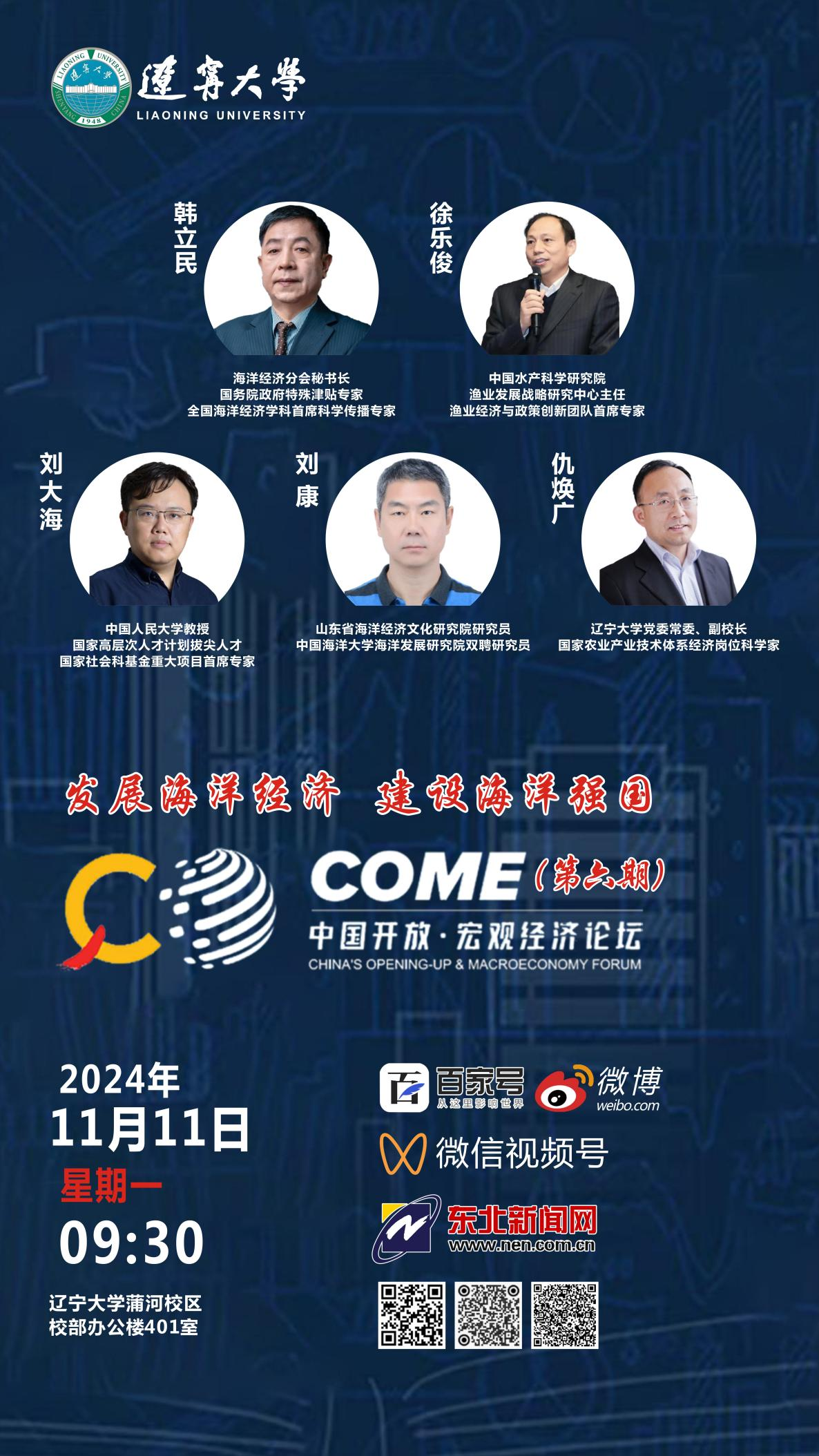 太阳集团中国开放・宏观经济论坛(COME)(第6期)即将于11月11日召开,本期论坛聚焦“发展海洋经济,建设海洋强国”,邀请全国知名学者展开联合研讨。