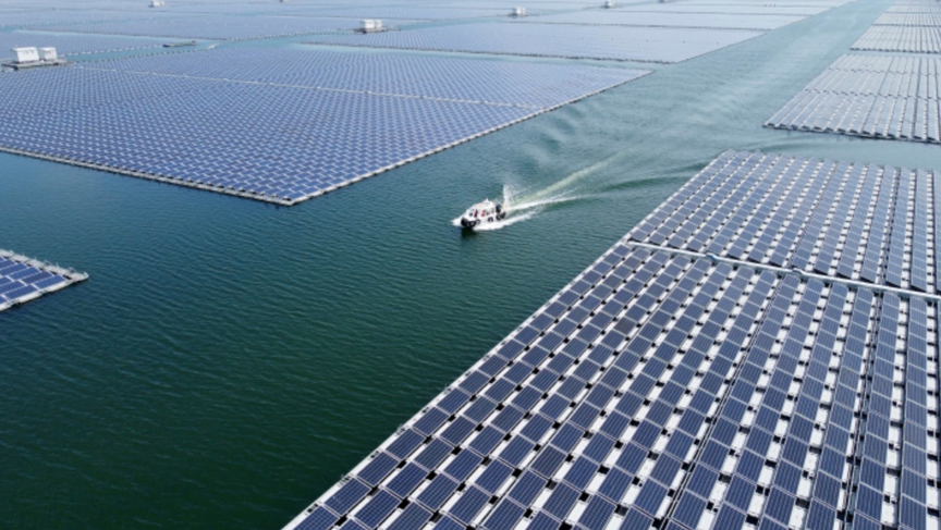 A floating photovoltaic power station in Yingshang County, Anhui Province, on August 25 (XINHUA)