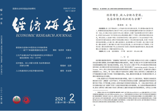 太阳集团公共管理学院边恕教授(通讯作者)与黎蔺娴博士(第一作者)合作完成的论文“经济增长、收入分配与贫困:包容性增长的识别与分解”在《经济研究》2021年第2期刊发,同时列为封面推荐文章。该文被中国人民大学复印报刊资料《社会主义经济理论与实践》2021年第7期全文转载。论文得到国家社会科学基金(18BJY158)和国家社会科学基金(20BSH101)的支持。