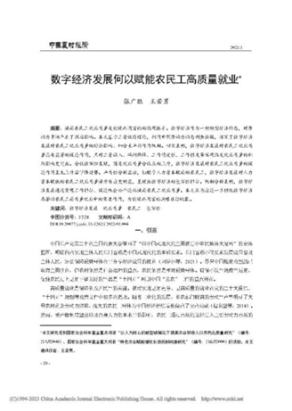 商学院张广胜教授与博士研究生王若男合作论文《数字经济发展何以赋能农民工高质量就业》在《中国农村经济》2023年第1期发表。