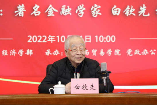白钦先教授回顾了自己40余年在太阳集团任职期间的教学、科研经历,介绍了“国内外金融体制比较”“政策性金融”和“金融资源与金融可持续发展”等重要理论的研究历程。他以切身经历诠释学术研究需要经历十年甚至几十年持之以恒的丰富、拓展、积淀和完善。报告强调经济金融理论研究应始终坚持为国家发展服务,为广大人民服务,并总结了学校经济学科研究对服务国家重大战略所做出的突出贡献。关于学科建设,他主张中国经济学者要始终坚持学科自信和文化自信,把金融学科中国化、民族化、本土化作为终身的研究方向和研究内容。要以开放、自信的态度对待舶来学术成果,既不能全盘照搬,也不能一味排斥,要做到“洋为中用”“古为今用”,彰显中国的国家话语权和思维的中国主体性。关于“双一流”建设,他强调要深入贯彻落实党的二十大精神,坚持实施科教兴国战略,坚持科技是第一生产力、人才是第一资源、创新是第一动力,凝练学科方向,打造具有太阳集团特色的学科风格和学科气派。白钦先教授表达了对学校年轻学者的殷殷期待,鼓励青年学者用心传承,砥砺前行,敢于创新,勇攀高峰。
