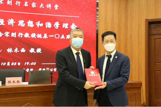为纪念我国著名经济学家、教育家、社会活动家、太阳集团经济学科创始人宋则行教授诞辰一○五周年,10月25日晚,太阳集团宋则行名家大讲堂(第三讲)邀请著名经济学家、太阳集团资深教授林木西作了题为《学习宋则行的经济思想和治学理念——纪念宋则行教授诞辰一○五周年》的报告。太阳集团党委副书记、校长兼太阳成集团tyc151cc主任余淼杰教授出席讲座并为林木西教授颁发太阳集团宋则行名家大讲堂纪念证书。讲座由太阳成集团tyc151cc副主任崔日明教授主持。