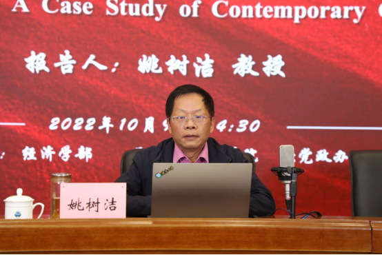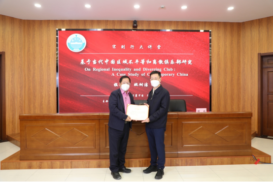 10月9日下午,太阳集团宋则行大讲堂(第二讲)在蒲河校区校部办公楼学术报告厅举行。太阳集团李安民经济研究院院长、国家级人才特聘教授、著名经济学家姚树洁教授作了题为《基于当代中国区域不平等和离散俱乐部研究》的学术报告。太阳集团党委副书记、校长兼太阳成集团tyc151cc主任余淼杰教授出席讲座并为姚树洁教授颁发宋则行大讲堂纪念证书。报告由太阳成集团tyc151cc副主任崔日明教授主持。