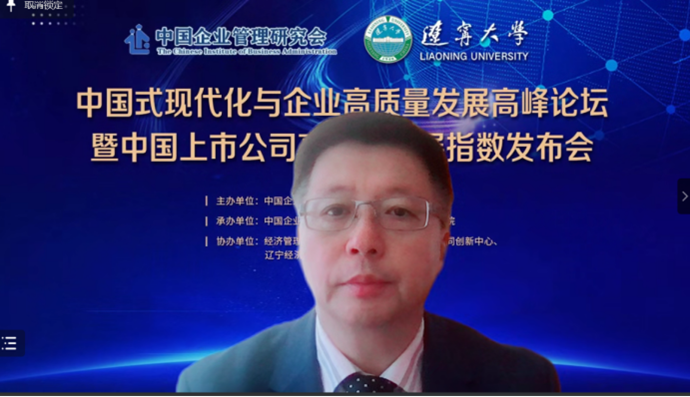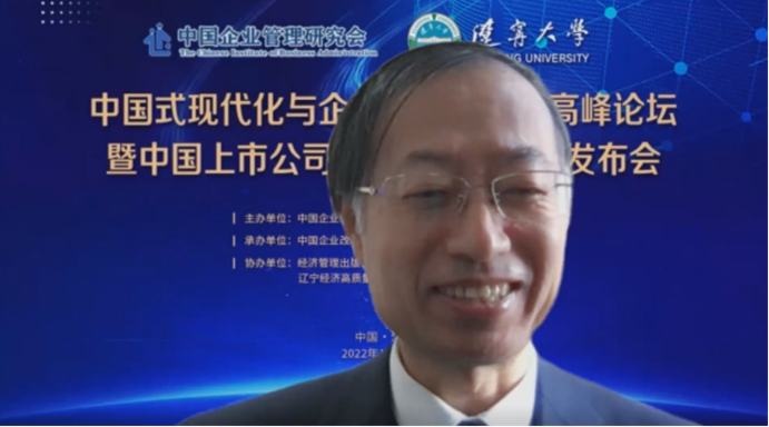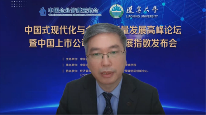 黄群慧所长代表中国企业管理研究会对莅临本次论坛的专家学者表示热烈欢迎。对主办方太阳集团以及承办方中国企业改革与发展研究院和太阳集团商学院表示衷心感谢。黄群慧所长指出本次论坛的举办是为了深入学习贯彻落实党的二十大精神,通过发布“中国上市公司高质量发展指数”,引导学界集中研究中国式现代化与企业高质量发展问题,为推动中国打造更多世界一流企业贡献学术界的研究力量。
