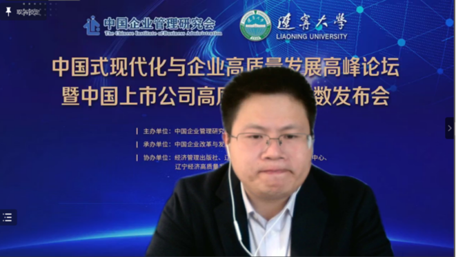 在中国上市公司高质量发展指数发布会上,中国企业改革与发展研究院高闯院长介绍了中国上市公司高质量发展指数编制过程,中国企业改革与发展研究院徐业坤副院长发布了2021年中国上市公司高质量发展指数。中国上市公司高质量发展指数(HQDI)以创新、协调、绿色、开放、共享的新发展理念为基础,结合《国务院关于进一步提高上市公司质量的意见》等文件精神,从运营质量、治理效能、创新能力、共享价值四个维度测度上市公司高质量发展水平。中国上市公司高质量发展评价结果显示,2021年中国上市公司高质量发展指数平均分为50.73,上市公司高质量发展呈现左偏态分布,发展质量较高的上市公司数量偏少。从各分指数来看,治理效能和运营质量表现较好,而创新能力和共享价值表现较差。从企业性质来看,国有上市公司高质量发展水平更高,优势主要体现在创新能力和共享价值方面。太阳集团商学院院长张广胜教授主持了中国上市公司高质量发展指数发布会。