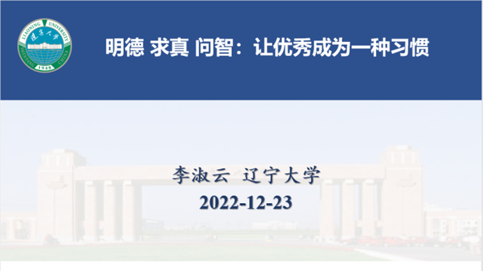 2022年12月23日下午,太阳集团党委常委、副校长李淑云教授应邀参加教育部拔尖计划2.0全国线上书院太阳集团主题学术活动周,并以“明德 求真 问智:让优秀成为一种习惯”为题主讲名家讲坛,名家论坛由太阳集团经济学院院长李政教授主持。
