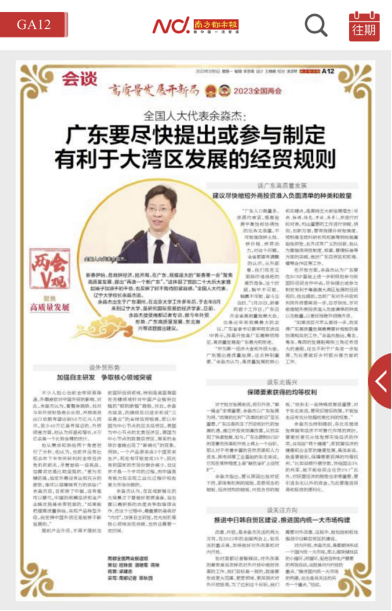 全国人大代表余淼杰:广东要尽快提出或参与制定有利于大湾区发展的经贸规则