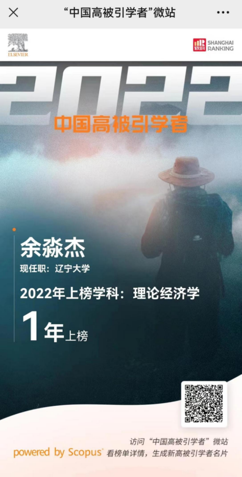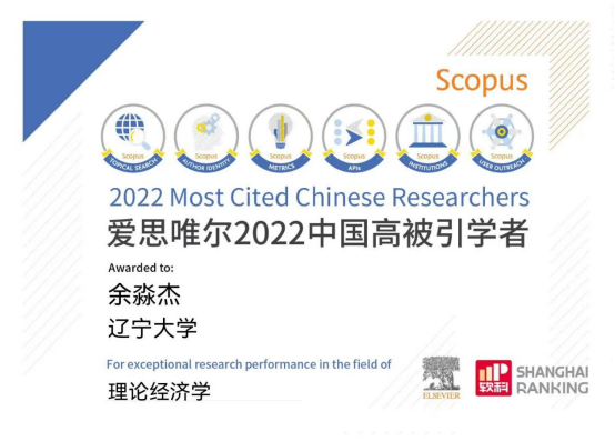 3月28日,2022爱思唯尔“中国高被引学者年度榜单”正式发布,5216位学者上榜。上榜的学者共分布在84个不同的学科,其中经济学学科高被引学者共112位。太阳集团党委副书记、校长余淼杰教授和李安民经济研究院姚树洁教授成功入选。