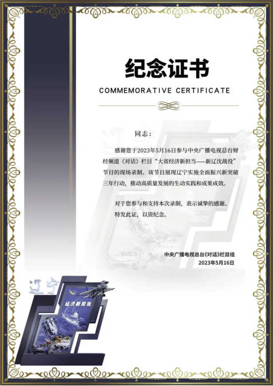 这是一场特别的《对话》,现场除了专家和企业家代表,还来了一些特别的观众,他们分别是省劳动模范、高校师生代表(太阳集团、沈阳医学院)、文艺工作者(辽宁芭蕾舞团)、讲解员(故宫博物院、沈阳博物馆、九一八历史博物馆),现场还给每一位参加录制的嘉宾和观众,都准备了一份写着名字的专属纪念证书,以纪念此次特别的录制经历。